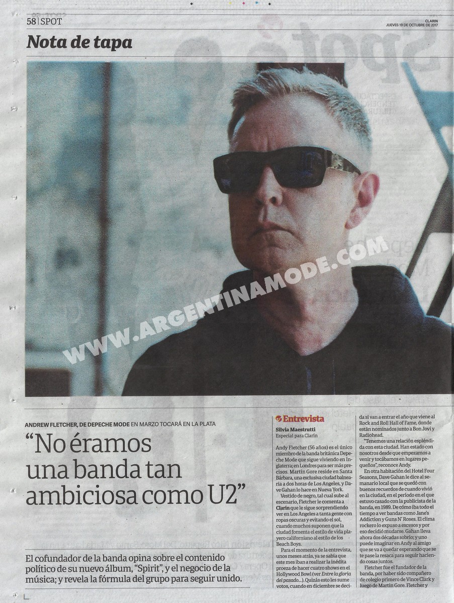 Dave Gahan le dice al semanario local que se